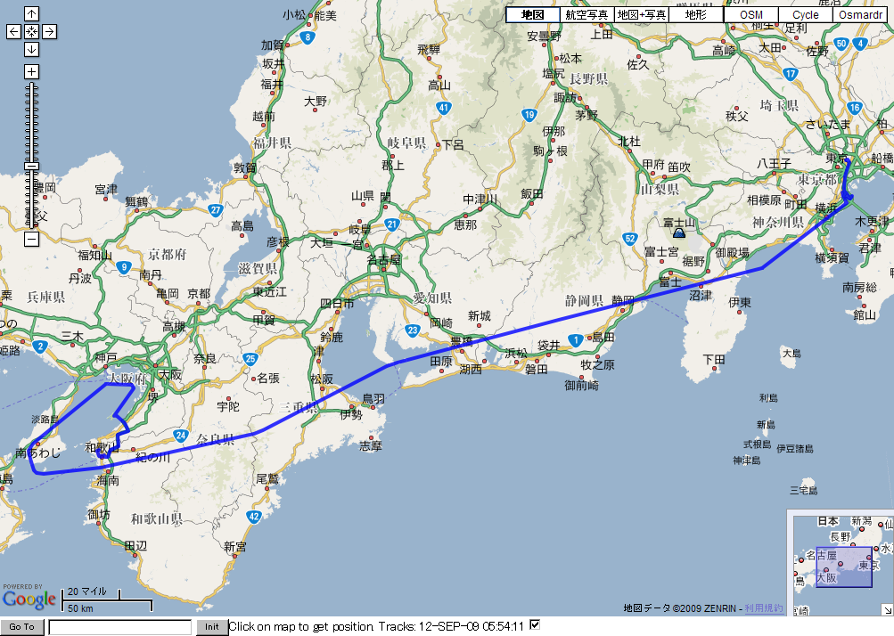 和歌山出張の軌跡(往路)+-+BT747でGPSの軌跡をGoogleMapsにプロット