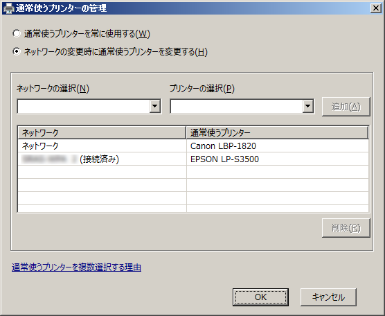 通常使うプリンターの管理+-+Windows7ではネットワークに合わせて通常使うプリンターの管理ができる
