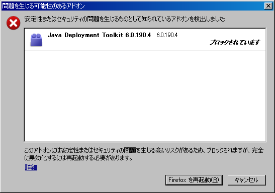 Firefoxのアドオンブロック画面+-+Firefoxが突然ポップアップを出すので驚いた