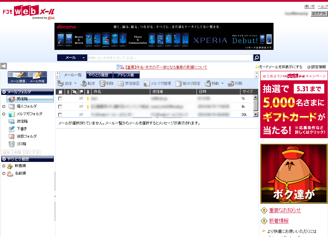 ドコモWebメール+-+ドコモWebメールに登録してみた
