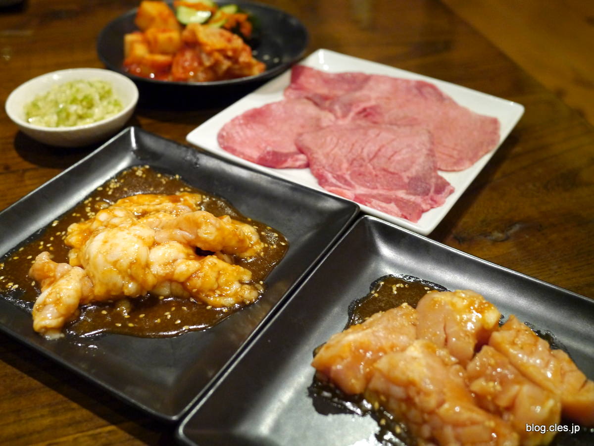 上ミノ、シマ腸、ネギ塩タン、キムチ盛り合わせ+-+炭火焼+七福