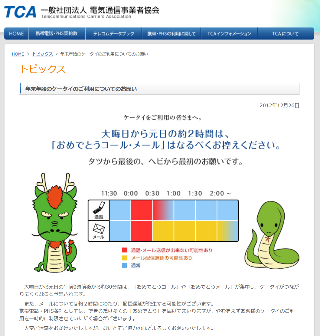 年末年始のケータイのご利用についてのお願い+-+システムに優しいあけおめを