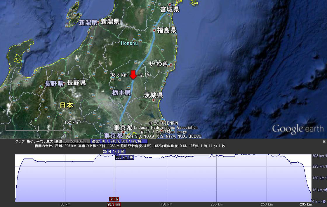 スーパーこまちの速度+-+「スーパーこまち」記念試乗会での最高時速