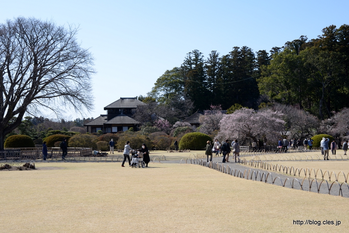 見晴広場からの好文亭+-+偕楽園で梅を見ようと思ったけど・・・