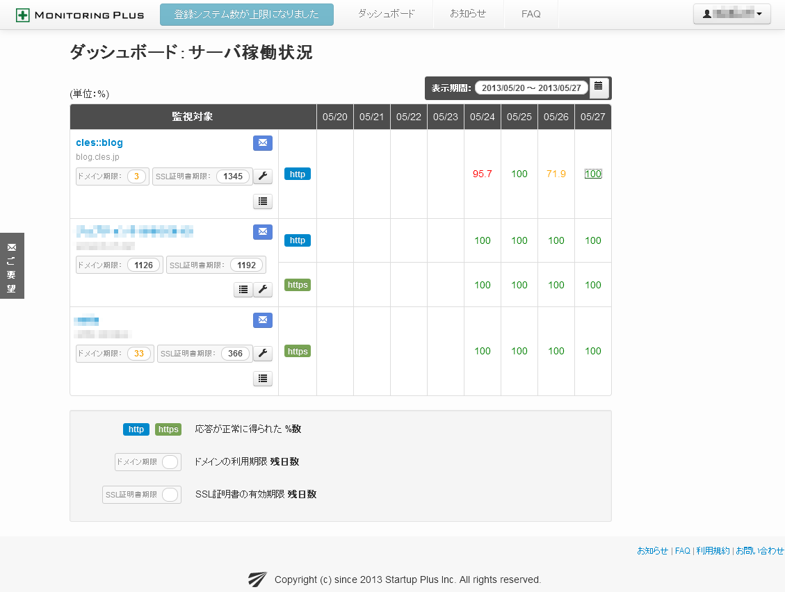 ダッシュボード+-+無料で使えるウェブサイト死活監視サービス「モニタリングプラス」