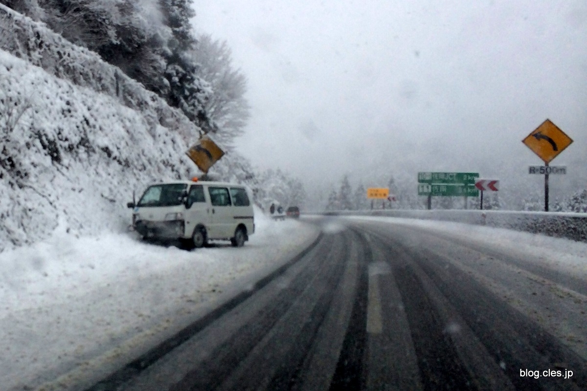 スピンしたワゴン+-+津山で痛恨の「ここで出よ+ユキ通行止」!