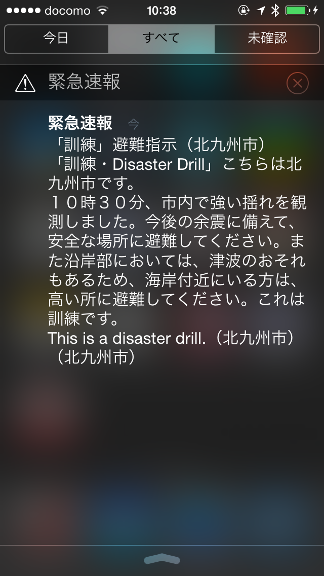 エリアメール(訓練)+-+エリアメールの訓練で驚いた