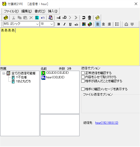 付箋紙21FE+-+IP+Messenger+互換のネットワーク機能を持った「ふせん」アプリ