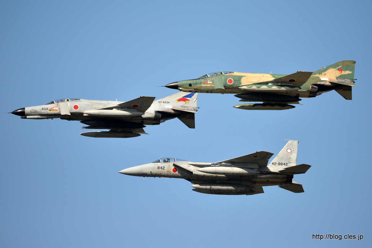 異種編隊飛行+F-15(42-8842)、+F-4(07-8434)、+RF-4(57-6912)+-+梅組最後の百里基地航空祭+2015+(ウェザーチェック~航過飛行編)