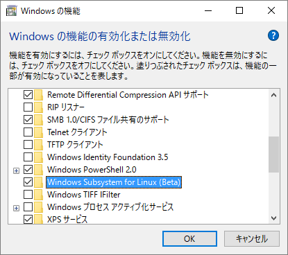 Windows+の機能の有効化もしくは無効化+-+Windows+10+で+bash+を試してみた