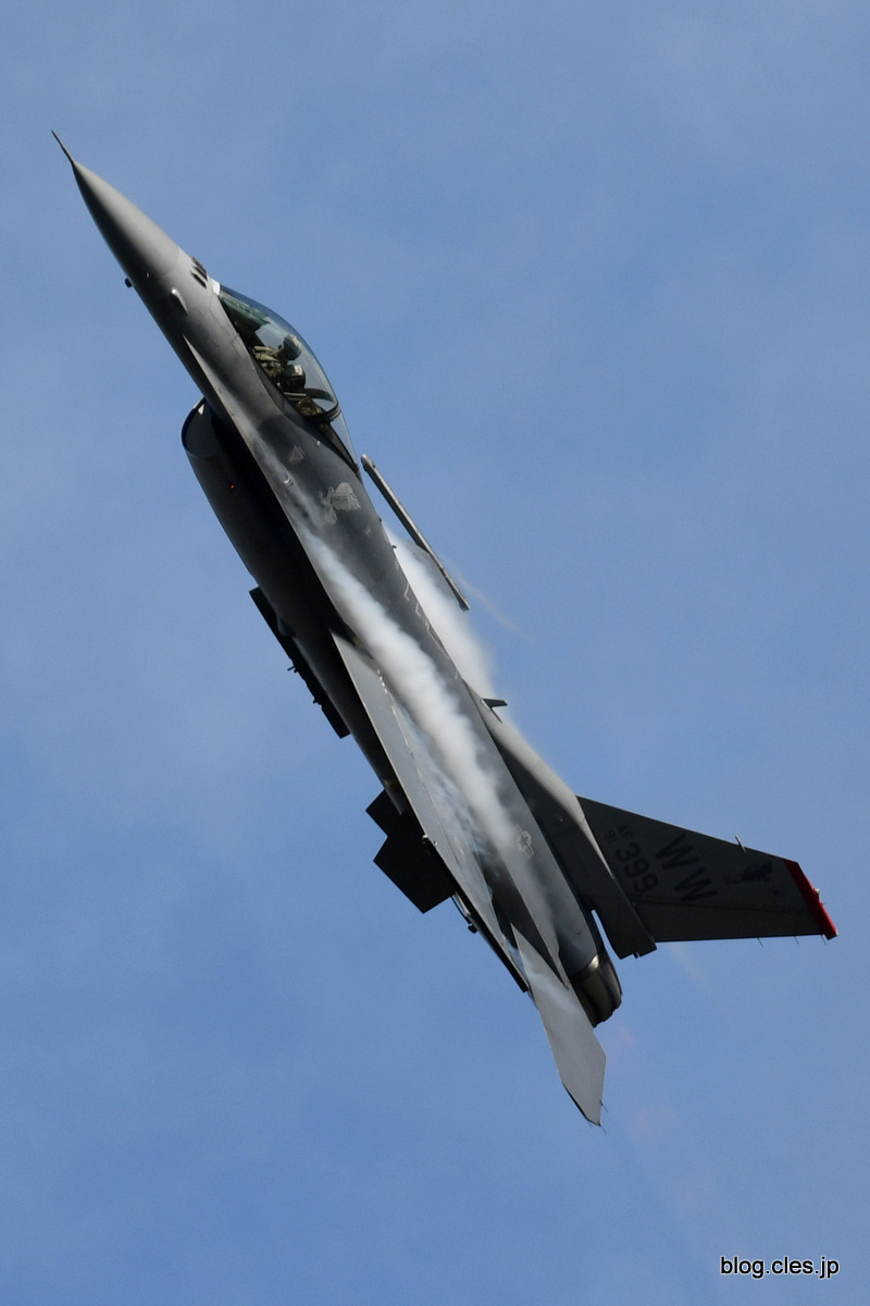 急上昇する+F-16(AF91-399)+-+岐阜基地航空祭+米軍+F-16+アクロバット飛行前日予行