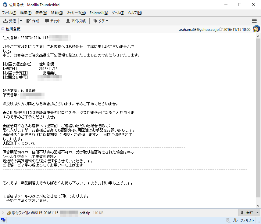 佐川急便を騙るフィッシングメール+-+佐川急便を騙る偽メールに注意