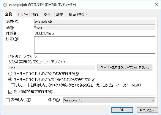 タスクのプロパティ+一般+-+タスクスケジューラに登録されているタスクに外部から引数を与える