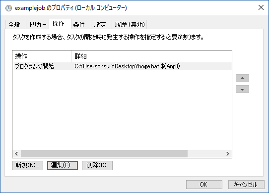 タスクのプロパティ+操作+-+タスクスケジューラに登録されているタスクに外部から引数を与える