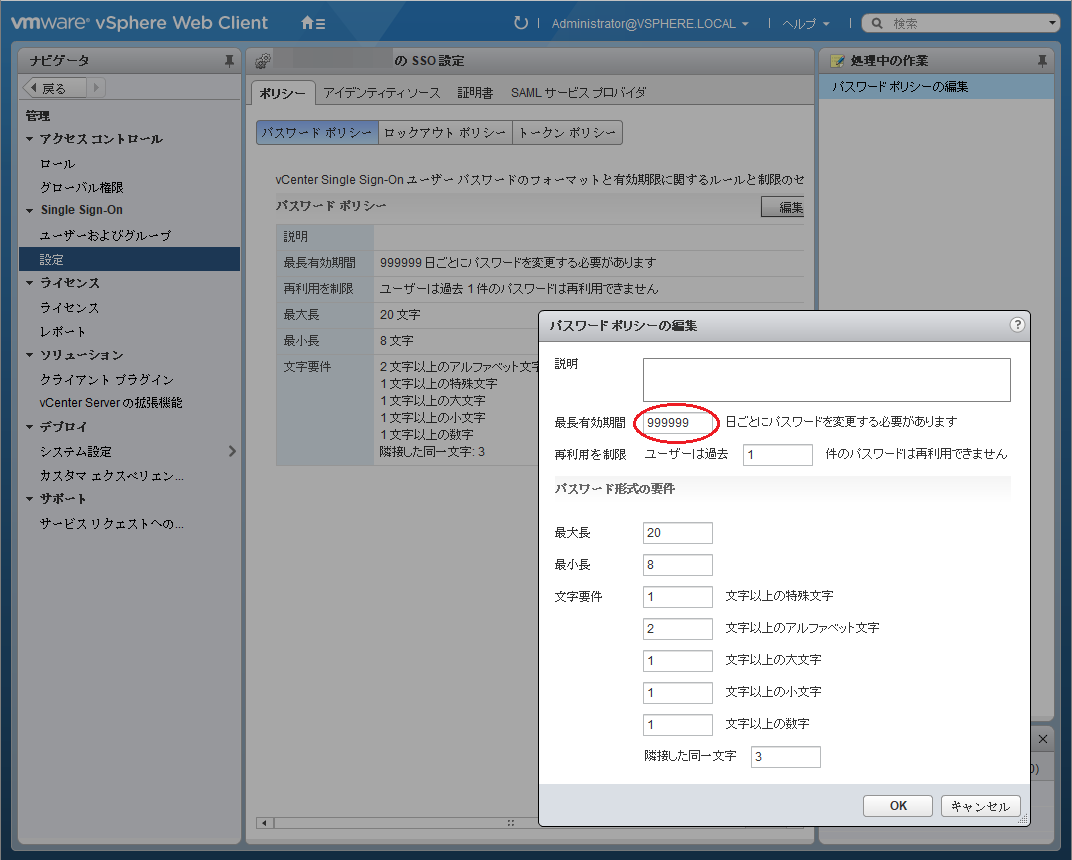 パスワードポリシー+-+vCenter+Server+に「ご使用中のパスワードはあと○○日で期限が切れます」と言われたときは