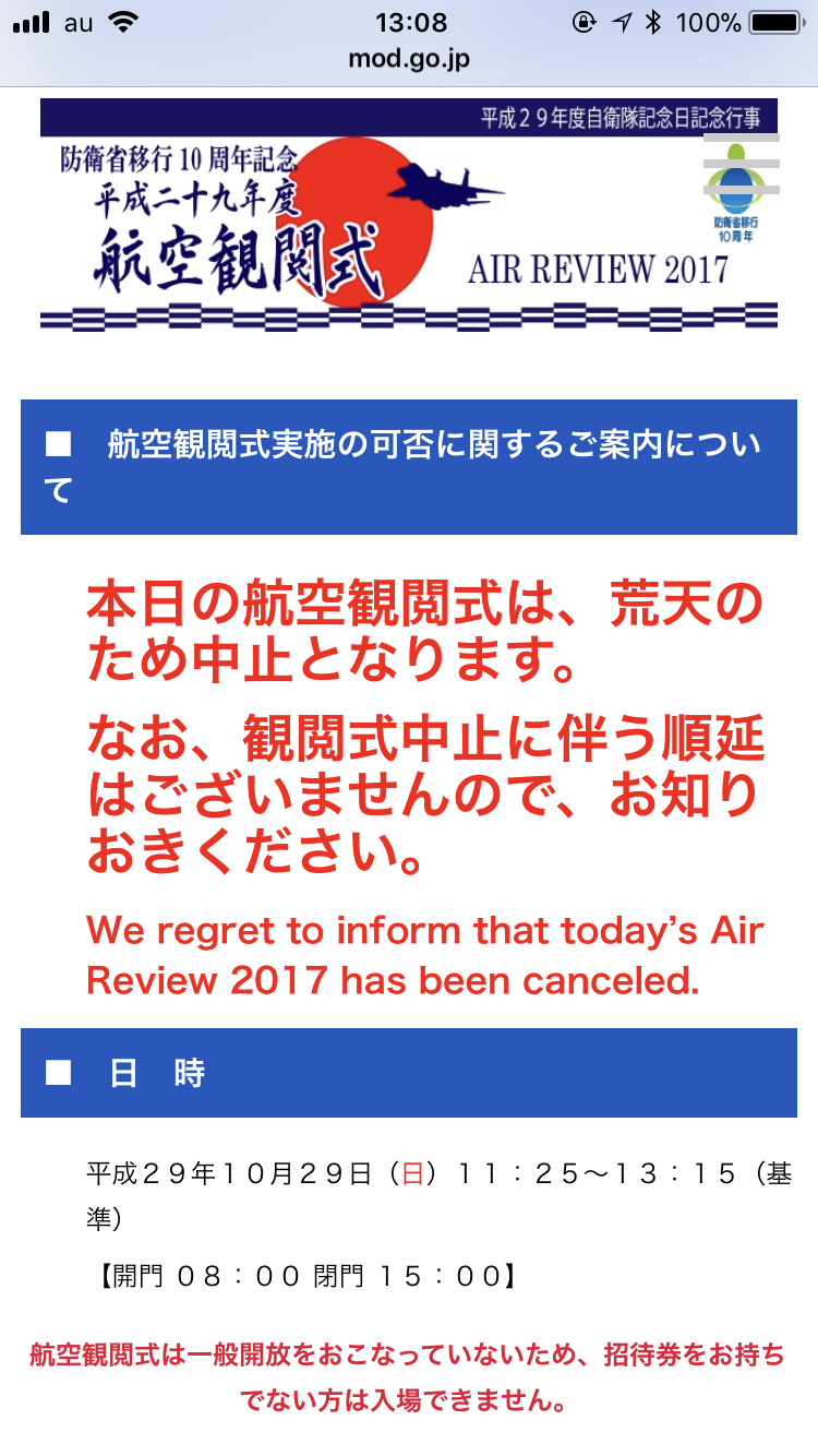 平成+29+年度航空観閲式+-+航空観閲式は荒天で中止に