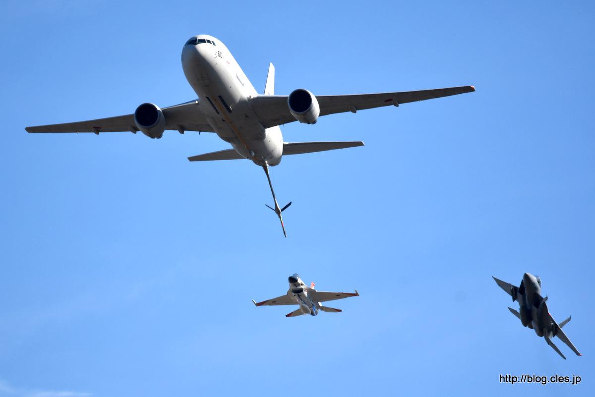 KC-767(87-3601)、F-2(63-8502)、F-15(32-8942)+模擬空中給油+-+飛実団の機動飛行(岐阜基地航空祭+2018)