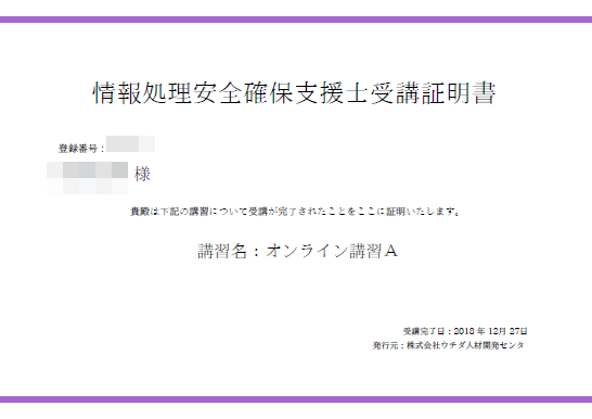 オンライン講習A+受講証明書+-+情報処理安全確保支援士「オンライン講習A」の受講を完了