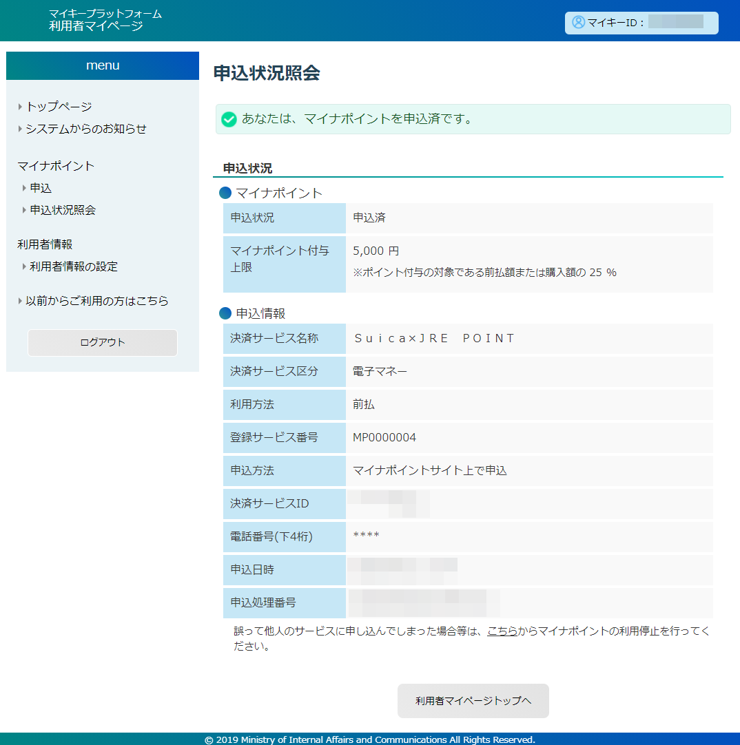 マイナポイント申し込み完了+-+マイナポイントは+Suica+にしました