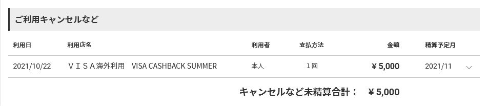 見慣れない払い戻しは+VISA+のサマーキャンペーン