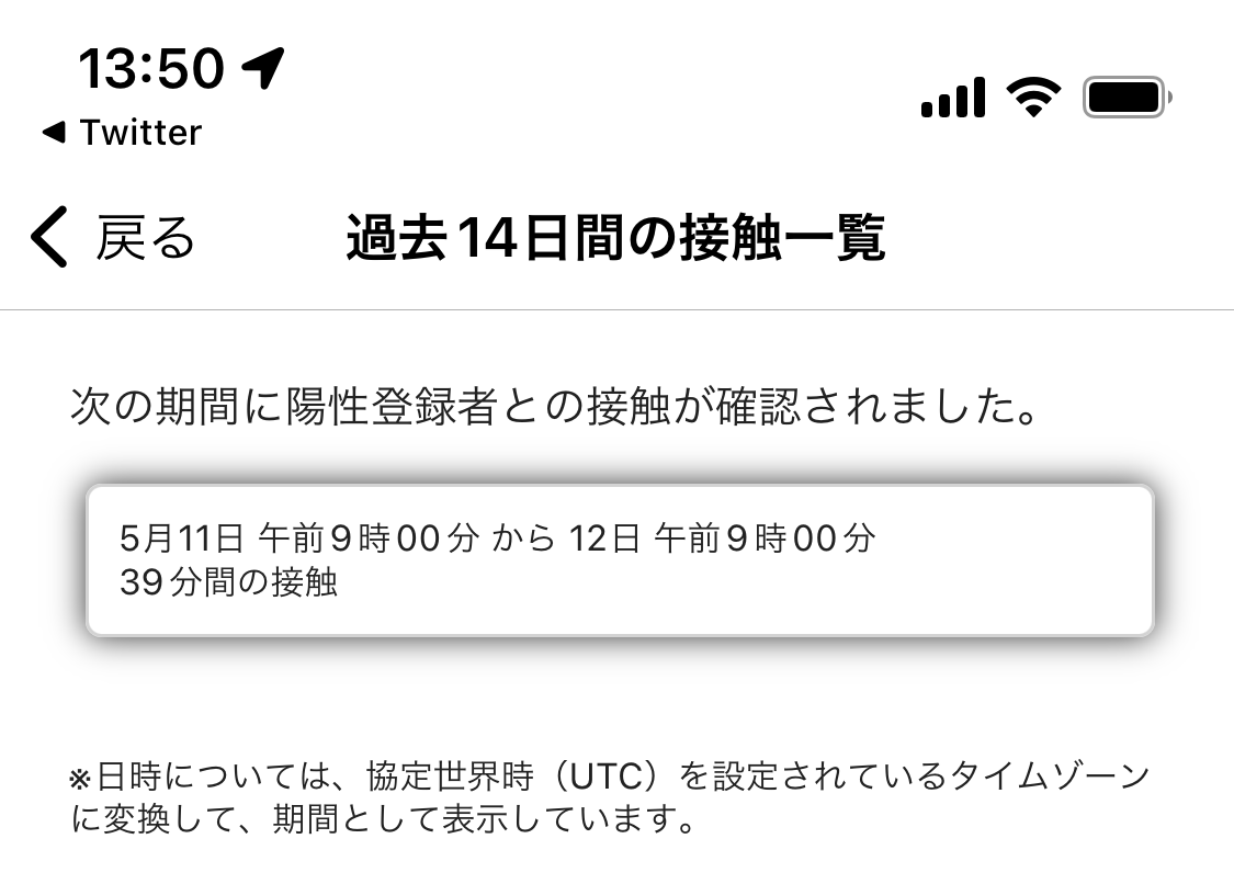 過去+14+日間の接触一覧+-+COCOA+から接触通知が届いた(4+回目)