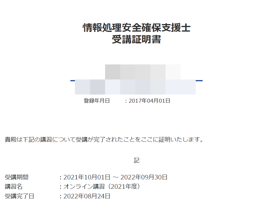 情報処理安全確保支援士+受講証明書+-+登録セキスペのオンライン講習を修了